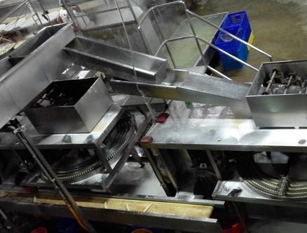 面筋卷經(jīng)輸送系統(tǒng)依次均勻的進(jìn)入連續(xù)蒸煮設(shè)備,完成面筋卷的煮熟過程。